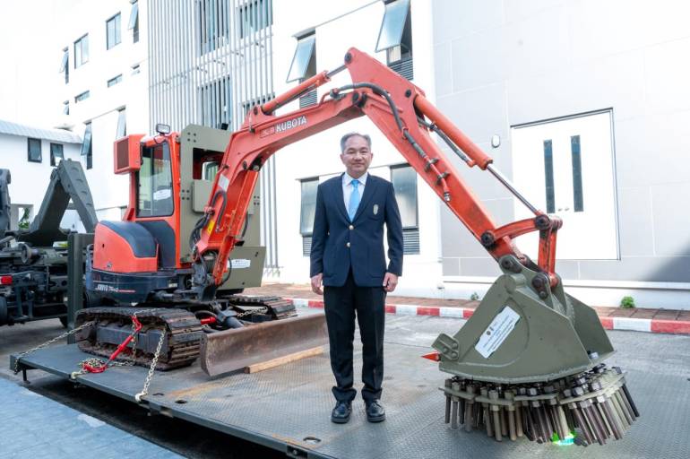 สวทช. ร่วมกับ คณะนักศึกษา วปอ.67 เปิดตัว "ต้นแบบรถขุดตักดัดแปลงทำลายทุ่นระเบิด PMN-2 ฝีมือการวิจัยและประดิษฐ์ด้วยคนไทย ชูเหมาะ สำหรับภูมิประเทศซับซ้อนสูงที่ชายแดนไทย-กัมพูชา ดัดแปลงจากรถขุดตักเล็กติดชุดก้านกดโลหะ และแผ่นเกราะกันแรงระเบิด