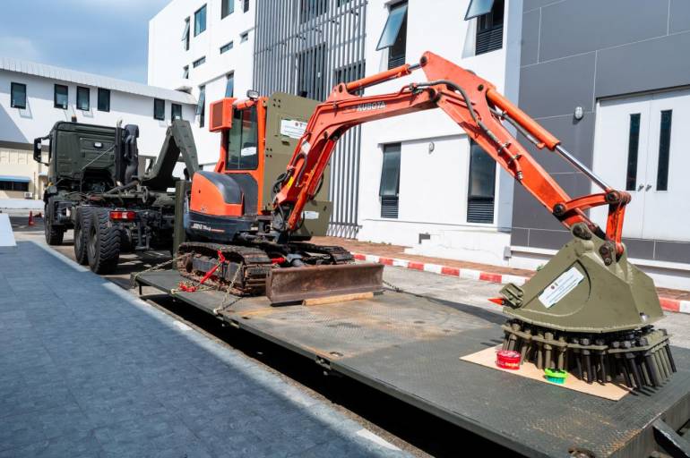 ส่วน พล.ท.สิรภพ ศุภวานิช เจ้ากรมการทหารช่าง กล่าวว่า ภารกิจของทหารช่าง คือทำให้พื้นที่ปลอดภัยจากทุ่นระเบิด ที่ผ่านมาการต่อต้านสนามทุ่นระเบิด เราใช้เจ้าหน้าที่ อีโอดี เข้าตรวจด้วยเครื่องตรวจจับโลหะแล้วเก็บกู้ หรือ ทำลายในพื้นที่ด้วยคน ในขณะที่ รถถากถางสนามทุ่นระเบิด กองทัพบกไทยเคยมีใช้งานจำนวน 3 คันในทศวรรศที่ 90 แต่โดนทุ่นระเบิดดักรถถังทำลายเสียหายไป 1 คัน ปัจจุบัน 2 คันได้ถูกฟื้นคืนชีพจากซากชิ้นส่วนของคันที่ถูกทำลาย และมีีรถของหน่วย TMAC ที่เป็นแบบโซ่ใช้งานอีก 1 คัน แล้วคันใหม่ที่ได้มานี่เป็นรถแบ็คโฮขุดตักของคูโบต้า นำมาติดแผ่นเกาะด้านหน้า และมีกล้องซีซีทีวี โดยการใช้งานสามารถป้องกัน ทุ่นระเบิด PMN-2 แต่แบบ "กบกระโดด" หรือ M16A1 ยังรับมือไม่ได้ หลังจากนี้จะส่งเข้าพื้นที่ไปลองใช้งานที่ ช่องอานม้า และ ภูมะเขือ ในวันที่ 12 ก.ย.2568 นี้.