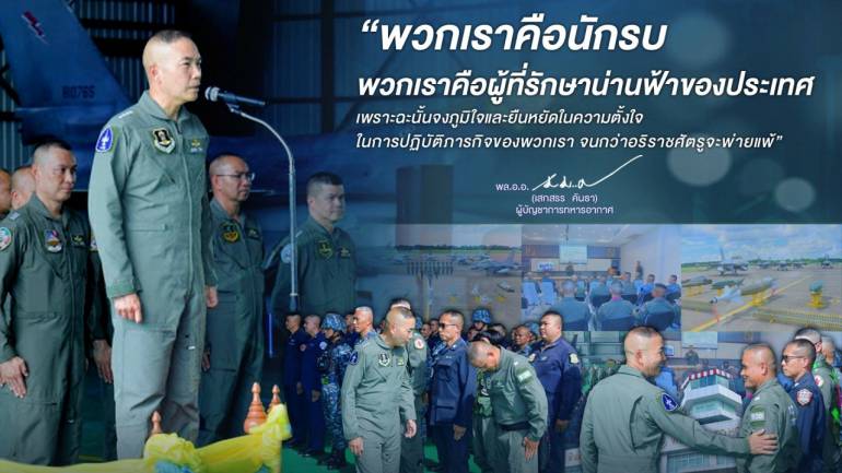 “ขอให้พวกเรานั้นดำรงตนตั้งมั่นอยู่ในหน้าที่ ที่เราได้รับมอบหมายและรับผิดชอบ ให้ตั้งใจทำงาน ทำหน้าที่ของเราอย่างเต็มกำลังความสามารถจนกว่าพวกเราจะจัดการกับอริราชศัตรูให้เรียบร้อย หมดสิ้นความเป็นภัยคุกคามกับอธิปไตยของประเทศไทย” ผบ.ทอ.กล่าว
