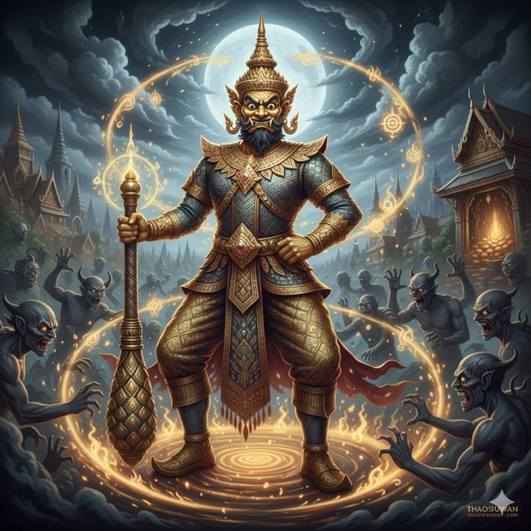 ◦ ลักษณะเด่น: มักมีกายสีทอง หรือสีเขียว สวมเครื่องทรงกษัตริย์เต็มยศ มีพระพักตร์ดุดัน ถือ กระบอง หรือ คทา เป็นอาวุธ บางครั้งก็ปรากฏในลักษณะของยักษ์