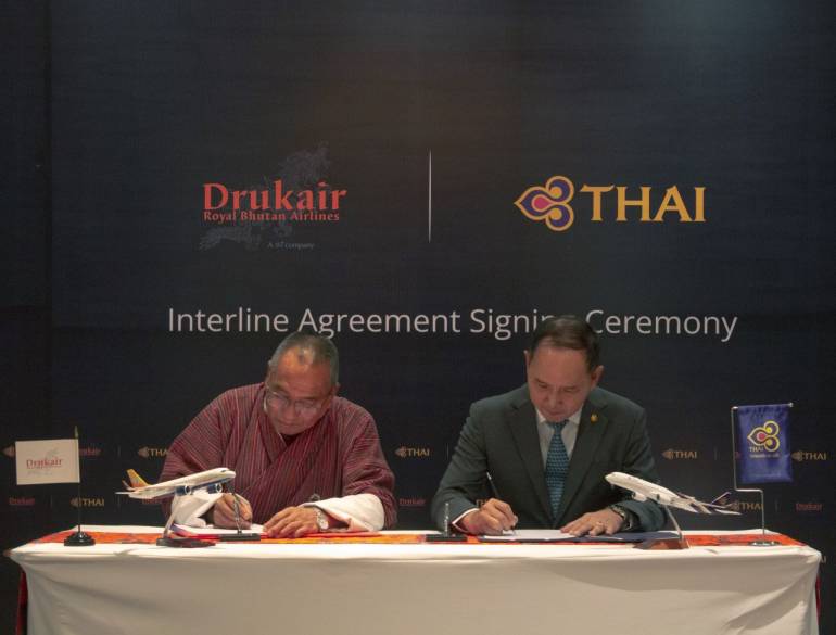 บริษัท การบินไทย จำกัด (มหาชน) (TG) และบริษัท Drukair Corporation Limited – Royal Bhutan Airlines (KB) ได้ลงนามในข้อตกลง Interline อย่างเป็นทางการ เพื่อยกระดับความสะดวกสบายในการเดินทางและเสริมศักยภาพการเชื่อมต่อเครือข่ายระหว่างสองสายการบิน โดยพิธีลงนามจัดขึ้น ณ เมืองพาโร ราชอาณาจักรภูฏาน โดยมีนายชาย เอี่ยมศิริ ประธานเจ้าหน้าที่บริหาร การบินไทยฯ และนาย Tandi Wangchuk ประธานเจ้าหน้าที่บริหาร Drukair เข้าร่วมเป็นประธานในพิธี