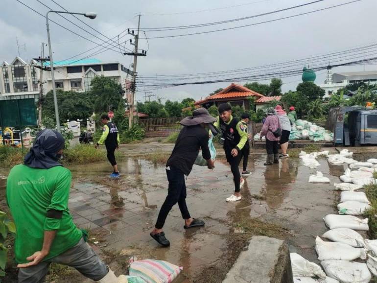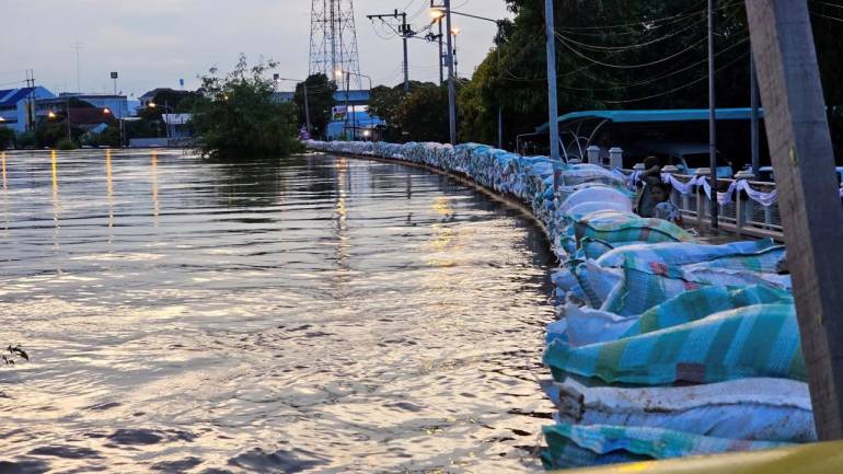 อ่างทองเร่งเสริมแบริเออร์ รับมือน้ำจากสิงห์บุรี เจ้าพระยาห่างคันกั้นคืบเดียว