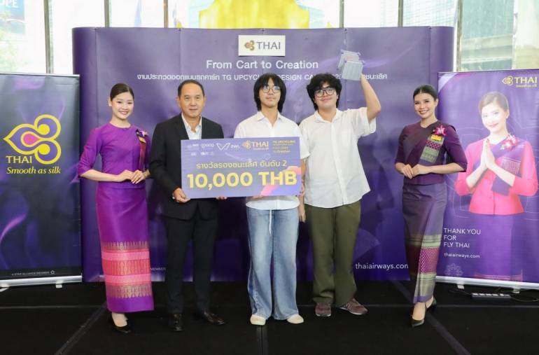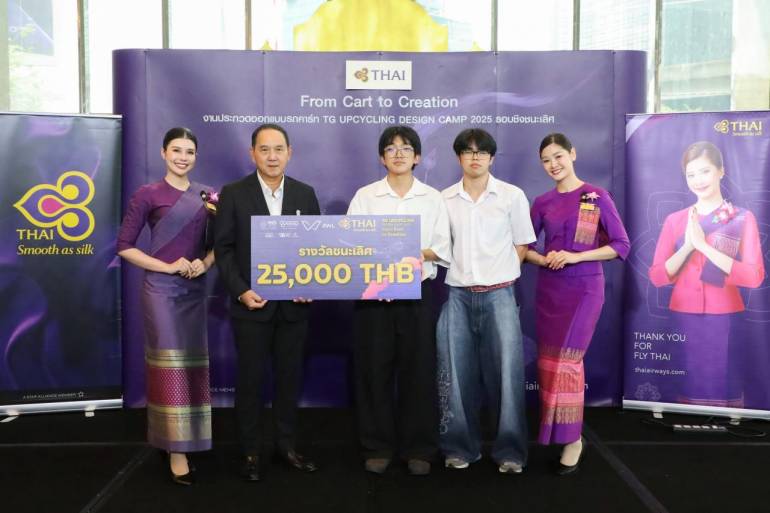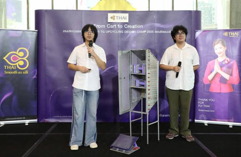 การบินไทยจัดงาน “TG UPCYCLING DESIGN CAMP 2025: From Cart to Creation”แข่งขันออกแบบผลิตภัณฑ์จากรถคาร์ทเก่าปลดระวาง หนุนแนวคิดเศรษฐกิจหมุนเวียน โดยแชมป์ปีนี้ คือ ม.ศิลปาการ กับผลงาน TG.01/02 และ TG.00 ชั้นวางอเนกประสงค์ ป้ายไฟและโคมไฟดีไซน์เก๋