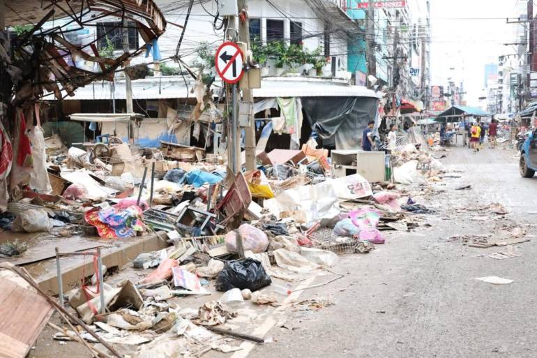 ทหารเรือ เผยภาพเมืองหาดใหญ่ หลังผ่านพ้นอุทกภัยน้ำท่วม 2568 โดยเผยภาพของตลาดกิมหยง 1 ในย่านเศรษฐกิจสำคัญ ที่วันนี้ร้านค้าและทรัพย์สินเสียหายจากกระแสน้ำทั้งหมด เหลือไว้เพียงเศษขยะ ตะกอนดินโคลนและคราบน้ำ