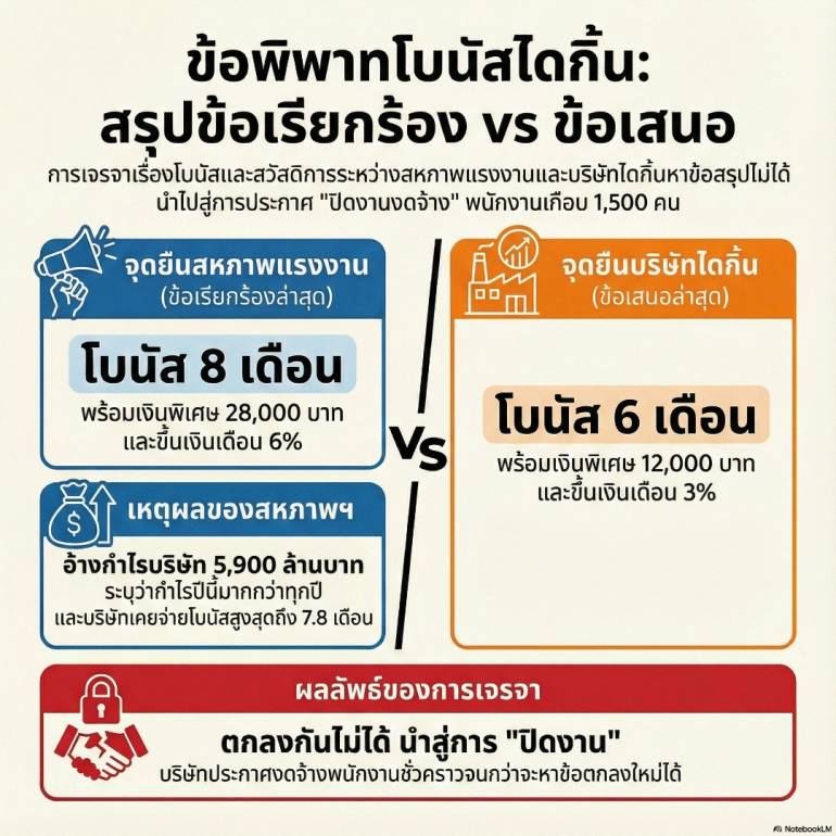ก่อนจะนำไปสู้ การเจรจา ครั้งล่าสุด คือ 4 ธันวาคม 2568 ซึ่งก็มีการเจรจาไม่ลงตัว กระทั่ง ทางบริษัท ได้ประกาศ “ปิดงาน งดจ้าง” ในที่สุด