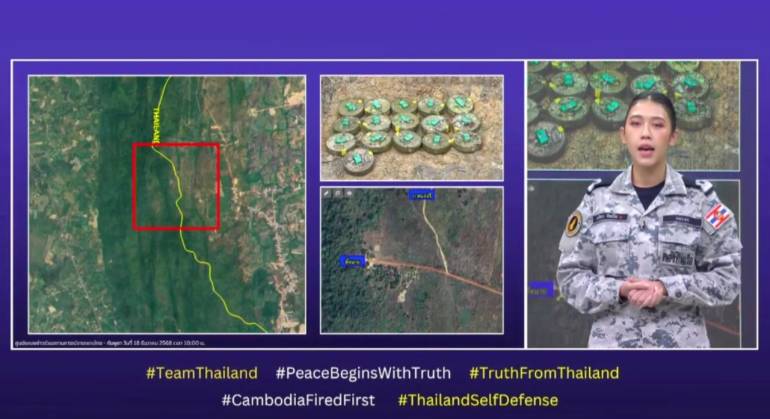 ด้าน กองทัพเรือ โดย ร.ท.หญิง นภัสกร ทิพย์โส ผู้ช่วยโฆษกกองทัพเรือ เผยว่า ช่วงวานนี้ที่กองบัญชาการป้องกันชายแดนจันทรบุรี-ตราด ได้เข้าควบคุมบ้านหนองรี และจากการตรวจค้นได้พบ ทุ่นระเบิดสังหารบุคคล ซึ่งเป็นทุ่นดัดแปลงทุ่นดักรถถัง จำนวน 16 ลูก ซึ่งการกระทำดังกล่าว ถือว่า เป็นการจงใจสร้างความอันตรายโดยไม่ระบุเป้าหมาย ถือเป็นการละเมิดกฎหมาย อนุสัญญาออตตาวา