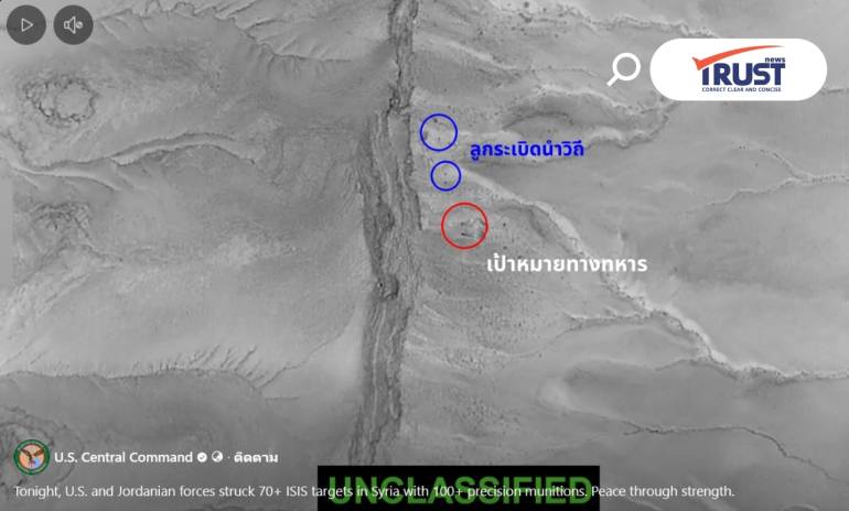 กองบัญชาการกลางสหรัฐฯ รายงานหลังกองทัพสหรัฐฯ และจอร์แดน เข้าถล่มเป้าหมายทางหารกว่า 70 จุดที่เป็นโครงสร้างพื้นฐานและคลังเก็บอาวุธของกลุ่ม ISIS ในตอนกลางของประเทศซีเรีย โดยมีการใช้ระเบิดนำวิถีแม่นยำสูงกว่าร้อยลูก เพื่อตอบโต้กรณี ทหารสหรัฐฯ ถูกสังหาร
