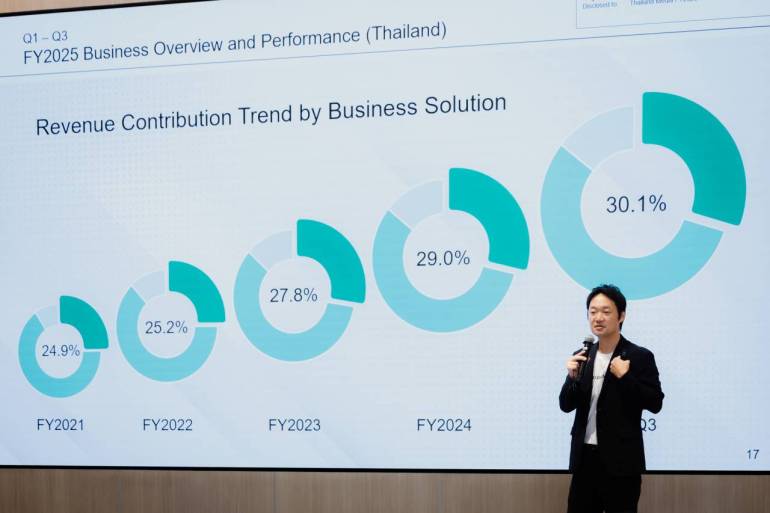 นายฮฮายาโตะ กล่าวถึงผลประกอบการปี 2568 ว่า ฟูจิฟิล์ม บิสซิเนส อินโนเวชั่น (ประเทศไทย) ภายใต้การดำเนินงานของ 3 ธุรกิจหลัก ยังคงรักษาระดับผลประกอบการได้อย่างทรงตัว โดยบริษัทฯ ขับเคลื่อนองค์กรผ่าน 3 กลยุทธ์สำคัญ ได้แก่ Select & Focus, Market Coverage Optimization และ New Image Creation เพื่อสร้างความแตกต่างและเสริมความแข็งแกร่งในการแข่งขัน ส่งผลให้สามารถรักษาระดับรายได้จากธุรกิจหลักทั้ง 3 แกนได้อย่างต่อเนื่องตั้งแต่ไตรมาส 1 ถึงไตรมาส 3 และสามารถเพิ่มสัดส่วนกำไรจากการดำเนินธุรกิจในไตรมาส 3 ได้ที่ระดับ 4% เมื่อเทียบกับปีก่อนหน้า
