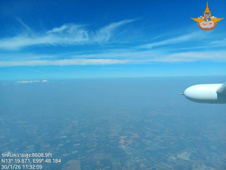 กทม.ฝุ่นพุ่งสูงเมื่อช่วงเช้า 30 ม.ค.69 ที่ผ่านมา อธิบดีกรมฝนหลวงฯ สั่งวางแผน ส่งเครื่องบินโปรยสารเคมีฝนหลวงสูตร 3 เหนือ จ.ราชบุรี และเพชรบุรี เพื่อดัดแปรสภาพอากาศ เร่งระบายฝุ่นออกจากพื้นที่ กทม.โดยเร็วที่สุด