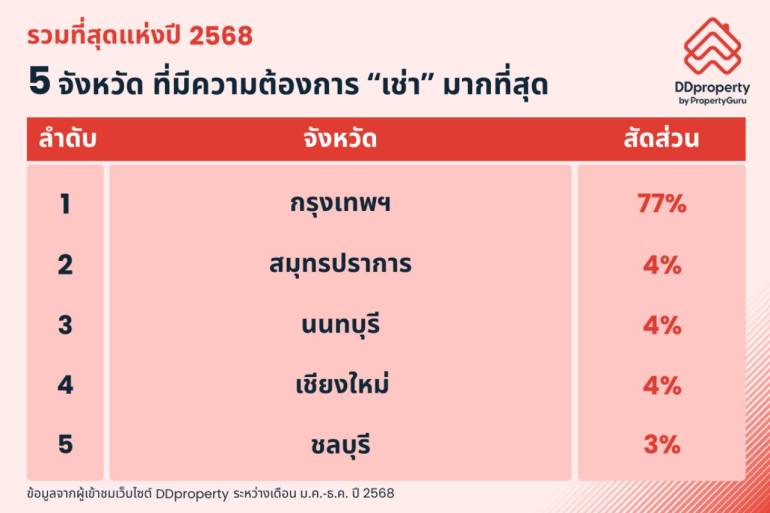 สำหรับ 5 จังหวัดที่มีความต้องการเช่ามากที่สุดในรอบปี 2568 ได้แก่