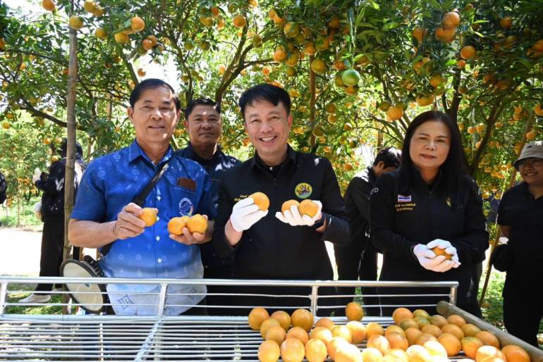 เมื่อวันที่ 12 ก.พ.2569 ที่ผ่านมา นายนิรันดร์ มูลธิดา อธิบดีกรมส่งเสริมสหกรณ์ พร้อมคณะสื่อมวลชนและผู้บริหารกรมส่งเสริมสหกรณ์ ลงพื้นที่อ.ฝาง จ.เชียงใหม่เพื่อติดตามสถานการณ์ผลผลิตส้มสายน้ำผึ้งที่กำลังออกสู่ตลาดในช่วงนี้ โดยจุดแรกเยี่ยมชมการจัดการสวนส้มปลอดภัยตามมาตรฐาน GAP ของนายก๋องแก้ว เรือนใจ ประธานกลุ่มเกษตรกรทำไร่โป่งน้ำร้อน ต.โป่งน้ำร้อน พร้อมรับฟังเรื่องราวการทำสวนส้มสายน้ำผึ้งจากเจ้าของสวน การดูแลรักษา การรวบรวมผลผลิตและการจำหน่ายสู่ตลาดปลายทาง