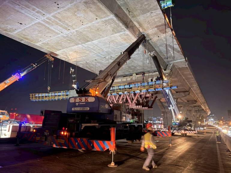 เมื่อวันที่ 2 มีนาคม 2569 นายปิยพงษ์ จิวัฒนกุลไพศาล อธิบดีกรมทางหลวง เปิดเผยความคืบหน้าล่าสุดการก่อสร้างโครงการทางหลวงพิเศษระหว่างเมืองหมายเลข 82 (M82) สายบางขุนเทียน - บ้านแพ้ว โดยเฉพาะในส่วนของตอนที่ 7 ช่วงสะพานข้ามแม่น้ำท่าจีนว่า ขณะนี้งานรื้อถอนคานที่เสียหายจากเหตุเครน LG ถล่มไปกระแทก และการรื้อถอนนั่งร้านชั่วคราวของงานเทคอนกรีตเชื่อมสะพาน (Balance Cantilever) ได้ดำเนินการเสร็จสิ้นเป็นที่เรียบร้อยแล้ว กรมทางหลวงจึงพร้อมคืนพื้นผิวจราจรทางหลักบนถนนพระราม 2 ทั้งขาเข้าและขาออก ทิศทางละ 3 ช่องจราจร แบบ 100% ในช่วงเวลากลางวัน ตั้งแต่เวลา 05.30 น. ถึง 20.00 น. เพื่อบรรเทาปัญหาจราจรและลดผลกระทบต่อการเดินทางของประชาชน โดยเจ้าหน้าที่ได้ดำเนินการจัดเรียงแบริเออร์และทำความสะอาดผิวทางให้พร้อมสำหรับการสัญจรอย่างเต็มรูปแบบตั้งแต่วันจันทร์ที่ 2 มีนาคมนี้เป็นต้นไป