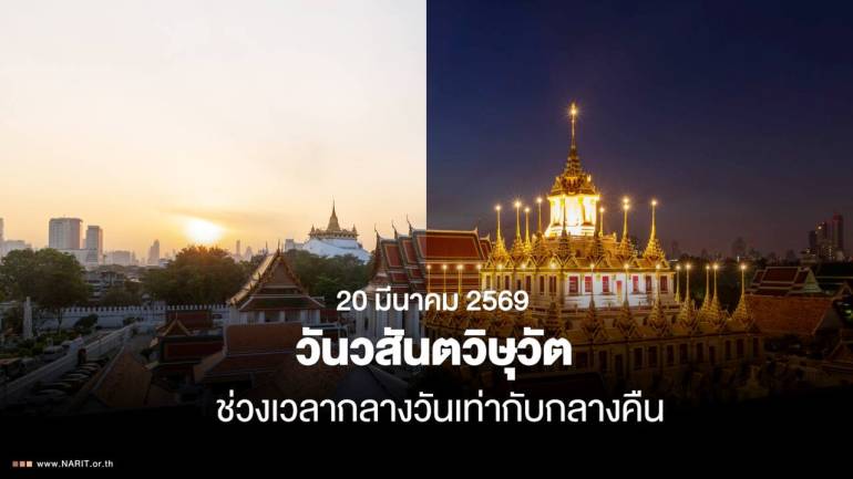 นายศุภฤกษ์ คฤหานนท์ ผู้ช่วยผู้อำนวยการ สถาบันวิจัยดาราศาสตร์แห่งชาติ (องค์การมหาชน) (สดร. หรือ NARIT) กระทรวงการอุดมศึกษา วิทยาศาสตร์ วิจัย และนวัตกรรม (อว.) เปิดเผยว่า วันที่ 20 มีนาคม 2569 จะเป็นวันที่มีช่วงเวลากลางวันและกลางคืนเท่ากัน ซึ่งเรียกว่า วัน “วสันตวิษุวัต” (วะ-สัน-ตะ-วิ-สุ-วัด) หรือ Vernal Equinox คำว่า “วิษุวัต” (Equinox) เป็นภาษาสันสกฤต หมายถึง “จุดราตรีเสมอภาค” จุดที่ดวงอาทิตย์อยู่ในตำแหน่งตั้งฉากกับเส้นศูนย์สูตรของโลกพอดี ส่งผลให้มีช่วงเวลากลางวันและกลางคืนยาวนานเท่ากัน