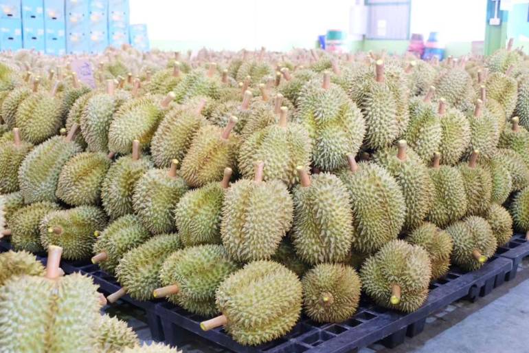 ขณะที่ นายธนภัทร จ่าวินัจ ผู้จัดการสหกรณ์ส่งเสริมธุรกิจภาคการเกษตรจังหวัดตราด จำกัด ต.วังตะเคียน อ.เขาสมิง จ.ตราด กล่าวถึงสถานการณ์ผลไม้จังหวัดตราดในฤดูกาลผลิตปีนี้ โดยเฉพาะทุเรียนจะเริ่มให้ผลผลิตประมาณวันที่ 15 เมษายนนี้เป็นต้นไป และในวันที่ 20 เมษายนจะมีการลงนามสัญญาซื้อขายทุเรียนชะนีเกาะช้าง ซึ่งเป็นสินค้า GI ของจังหวัดตราดกับห้างท็อปซูเปอร์มาร์เก็ตด้วย