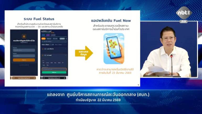เมื่อวันที่ 22 มีนาคม 2569 นายสราวุธ แก้วตาทิพย์ อธิบดีกรมธุรกิจพลังงาน กระทรวงพลังงาน เปิดเผยภายหลังการประชุมศูนย์บริหารและติดตามสถานการณ์การสู้รบในภูมิภาคตะวันออกกลาง ว่า รัฐบาลได้สั่งการให้ผู้ค้าน้ำมันตามมาตรา 7 และมาตรา 10 ติดประกาศราคาจำหน่ายน้ำมันเชื้อเพลิง และรายงานข้อมูลให้กรมธุรกิจพลังงานภายในเวลา 18.00 น. ของทุกวัน เพื่อให้สามารถติดตามสถานการณ์ได้อย่างใกล้ชิดและโปร่งใส