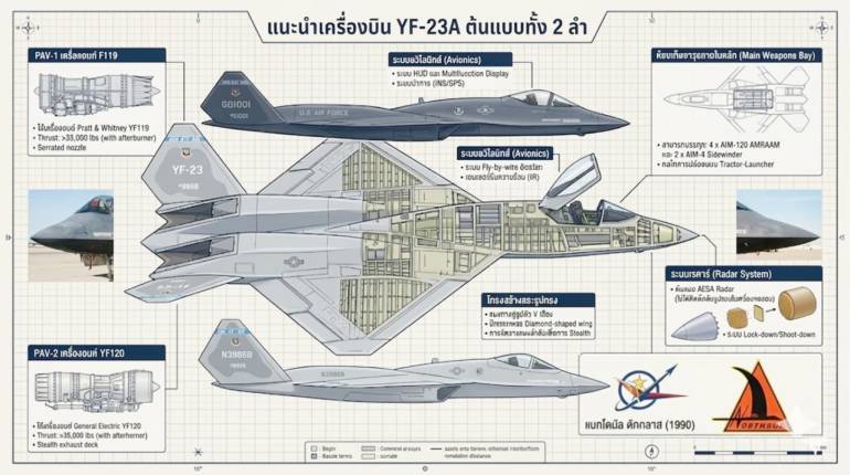 YF-23 Black Widow II ตำนานเครื่องบินขับไล่สเตลธ์ สเปกดี ที่ไม่ถูกเลือก