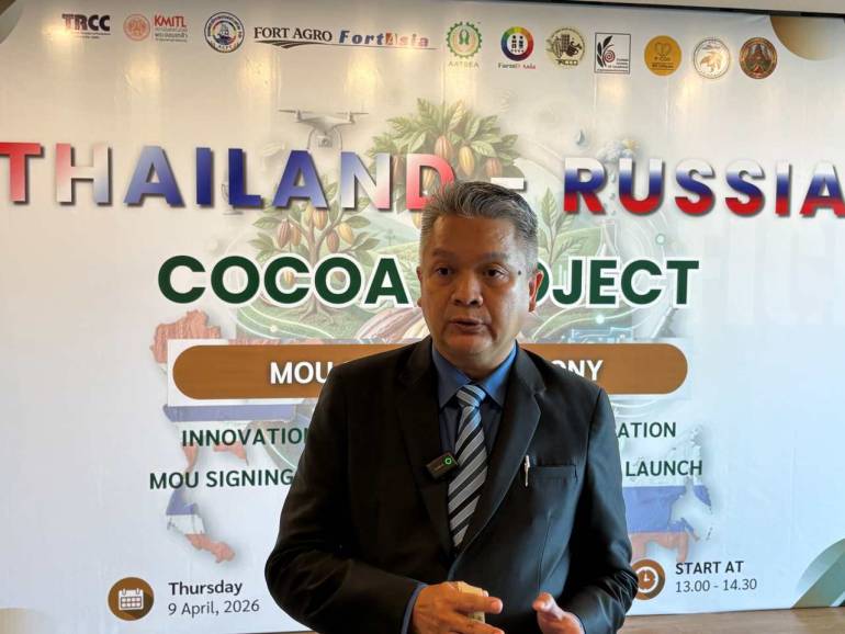 เมื่อวันที่ 9 เมษายน 2569 ผู้สื่อข่าวรายงานว่า สถาบันเทคโนโลยีพระจอมเกล้าเจ้าคุณทหารลาดกระบัง (สจล.) เปิดแผนสร้าง “ศูนย์ศึกษาวิจัยและพัฒนาโกโก้ ไทย-รัสเซีย” โดยประกาศร่วมมือและมีการลงนาม MOU กับ Fort Asia และ Fort Argo ในการทำศูนย์กลางด้านข้อมูลและการเรียนรู้สายพันธุ์โกโก้อุตสาหกรรมที่เหมาะสมกับพื้นที่ พร้อมวางโครงสร้างเครือข่ายวิสาหกิจชุมชนในภาคเหนือและภาคใต้ เพื่อสร้างมาตรฐานการหมัก และระบบการตรวจสอบย้อนกลับ (Traceability) รองรับผลผลิตจากเกษตรกรไทย ด้วยราคารับซื้อที่เป็นธรรม รองรับการส่งออกโกโก้ไปตลาดทั่วโลก
