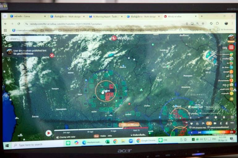 นายราเชน กล่าวต่อว่า จากการประชุมหารือกับผู้เชี่ยวชาญและนักวิทยาศาสตร์ในวันนี้ คาดการณ์ว่าในช่วงวันที่ 9-10 เมษายน 2569 จะมีความชื้นสัมพัทธ์ที่มีโอกาสทำให้เกิดฝนได้ จึงได้สั่งการให้หน่วยฯ จ.เชียงใหม่ วางแผนปฏิบัติการช่วงชิงสภาพอากาศทำให้เกิดฝนตกให้ครอบคลุมพื้นที่ จ.เชียงใหม่ และจังหวัดในภาคเหนือนบน ขณะเดียวกันได้สั่งการให้ หน่วยฯ จ.พิษณุโลก ปฏิบัติการช่วยเหลือพื้นที่ภาคเหนือตอนล่างให้ครอบคลุมด้วยเช่นกัน เพื่อให้พื้นที่ภาคเหนือทั้งหมดมีค่าคุณภาพอากาศที่ดีขึ้น