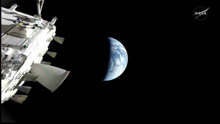 ครึ่งทางกลับบ้าน: ยานได้ผ่านจุดกึ่งกลางระหว่างดวงจันทร์กับโลกมาแล้ว และกำลังพุ่งเข้าหาโลกด้วยความเร็วที่เพิ่มขึ้นเรื่อยๆ ตามแรงดึงดูด