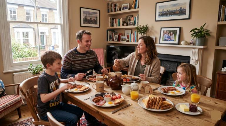 สำหรับชาวอังกฤษ อาหารเช้าคือ "สถาบัน" อย่างหนึ่ง Full English Breakfast หรือที่เรียกกันติดปากว่า "Fry-up" จุดเด่นคือทุกอย่างมักจะถูก "ทอด" รวมกันในกระทะเดียว ไม่ได้เป็นเพียงการนำของลงไปทอดในกระทะ แต่มันคือการรักษาสมดุลของรสชาติอูมามิ (Umami) และเค็ม โดยต้องมีอาหารหลักที่เป็น โปรตีน อย่างเบคอนสไตล์อังกฤษ (Back Bacon - เนื้อเยอะกว่ามัน หรือ ไส้กรอกหมูเนื้อแน่น และ หัวใจหลักที่จุดตัดสินความเป็นอังกฤษแท้อยู่ที่เครื่องเคียง Black Pudding (ไส้กรอกเลือด) และ Baked Beans (ถั่วในซอสมะเขือเทศ) ซึ่งต้องกินคู่กับ Back Bacon เนื้อหนานุ่มและไส้กรอกหมูเนื้อแน่น
