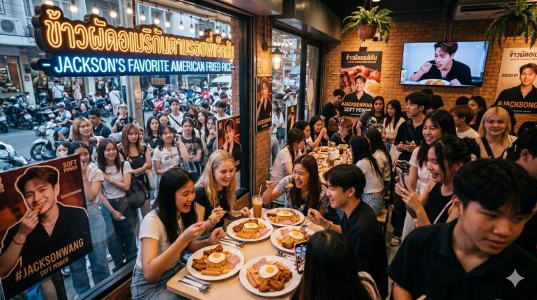 The Foodland Phenomenon ในการมาเยือนประเทศไทย แจ็คสัน หวัง ได้แวะไปที่ร้าน "ถูกและดี" ใน Foodland ช่วงเช้ามืด และสั่งเมนู ข้าวผัดอเมริกัน มากินอย่างเอร็ดอร่อย พร้อมกับคำชมที่ว่า "มันยอดเยี่ยมมาก!" เพียงชั่วข้ามคืน เมนูนี้ถูกยกระดับจากอาหารจานด่วนทั่วไป กลายเป็นเมนูที่แฟนคลับทั้งไทยและต่างชาติต้อง "ตามรอย" จนทำให้ยอดขายข้าวผัดอเมริกันในไทยพุ่งสูงขึ้นเป็นประวัติการณ์ กลายเป็น The Magic of Soft Power อีกหนึ่งเมนูสำหรับอาหารไทย