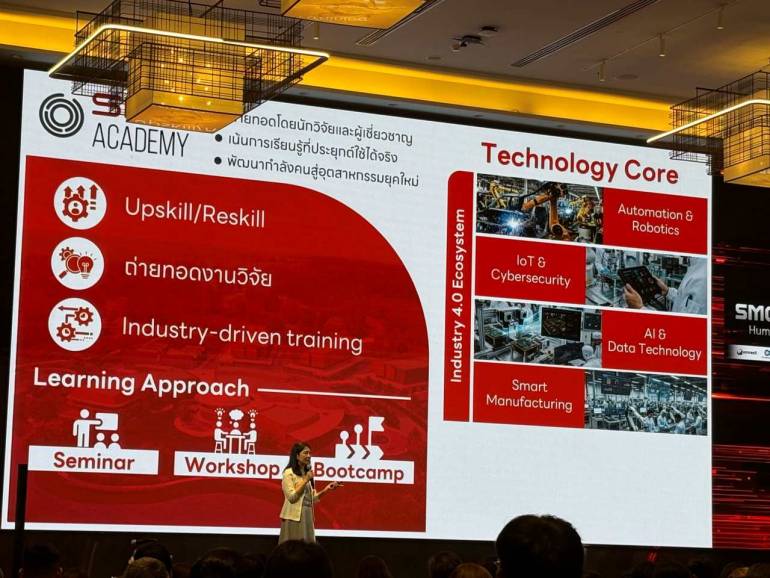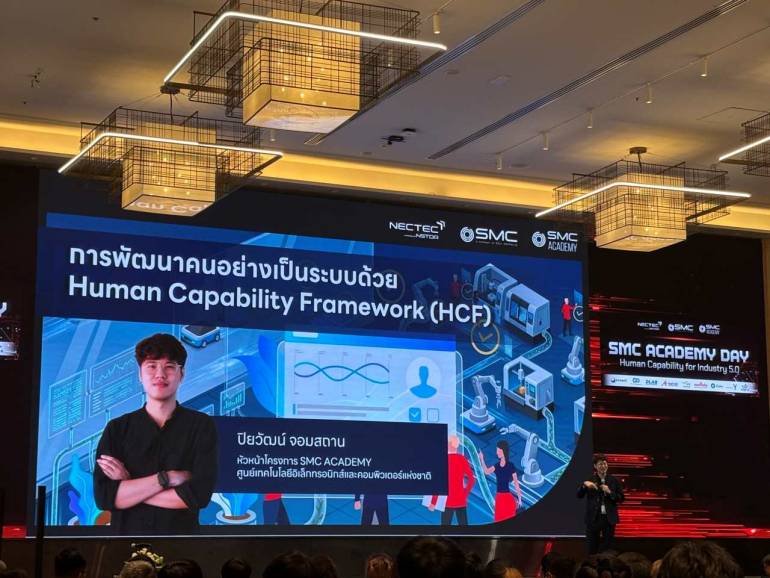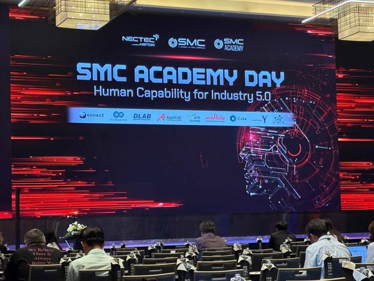 เมื่อวันที่ 29 เมษายน 2569 ผู้สื่อข่าวรายงานว่า ศูนย์นวัตกรรมการผลิตยั่งยืน (SMC) ภายใต้เนคเทค สวทช. จัดงาน “SMC ACADEMY DAY: Human Capability for Industry 5.0” ที่โรงแรม Novotel Bangkok Future Park Rangsit โดยในงานนี้มีการปักหมุดหมายสำคัญในการสร้างระบบนิเวศการพัฒนาบุคลากรทักษะสูง (Human Infrastructure) เพื่อรองรับการเข้าสู่ยุค Industry 5.0 อย่างเต็มรูปแบบ